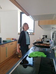 In der KJA-Wohnung im Martinushaus war es beinahe so märchenhaft, magisch und heimelig wie bei Frau Holle selbst. Nachdem die Frauen an einem Spinnrad vorbei in die Tiefe steigen mussten, konnten sie am Brunnen im Foyer über ihre eigenen Wege in die Tiefe, über ihre innere Zeit und über ihren Mut, einen Sprung ins Ungewisse zu wagen, meditieren. Nachdem sie glücklich wieder aufgestiegen waren, konnten sie mit der ersten Vorsitzenden Moni Krugler eine Traumreise in den Schnee erleben. Das Wetter spielte mit und so standen 18 Frauen auf der verschneiten Dachterrasse und blinzelten in die warme Sonne. Durch den Garten der Frau Holle ging es nach dem gemeinsamen Mittagessen mit Gedanken zum Brot und zu den Äpfeln. Anschließend erklärte die Geistliche Beirätin, Eva Meder-Thünemann,Wissenswertes über die Symbolik des Märchens. Überraschend war für Viele die Parallele von der Märchengestalt der Frau Holle zu den Erd-und Muttergöttinnen der Jungsteinzeit, sowie zur „Percht“, einer magischen Frauengestalt, die in den Rauhnächten der Sage nach um die Häuser fliegt. (Dass die ungetauften Kinder, denen früher von der Kirche ein christliches Begräbnis verwehrt wurde, dem Volksglauben nach bei Frau Holle gut aufgenommen wurden, war für alle Teilnehmerinnen eine ganz neue Information.