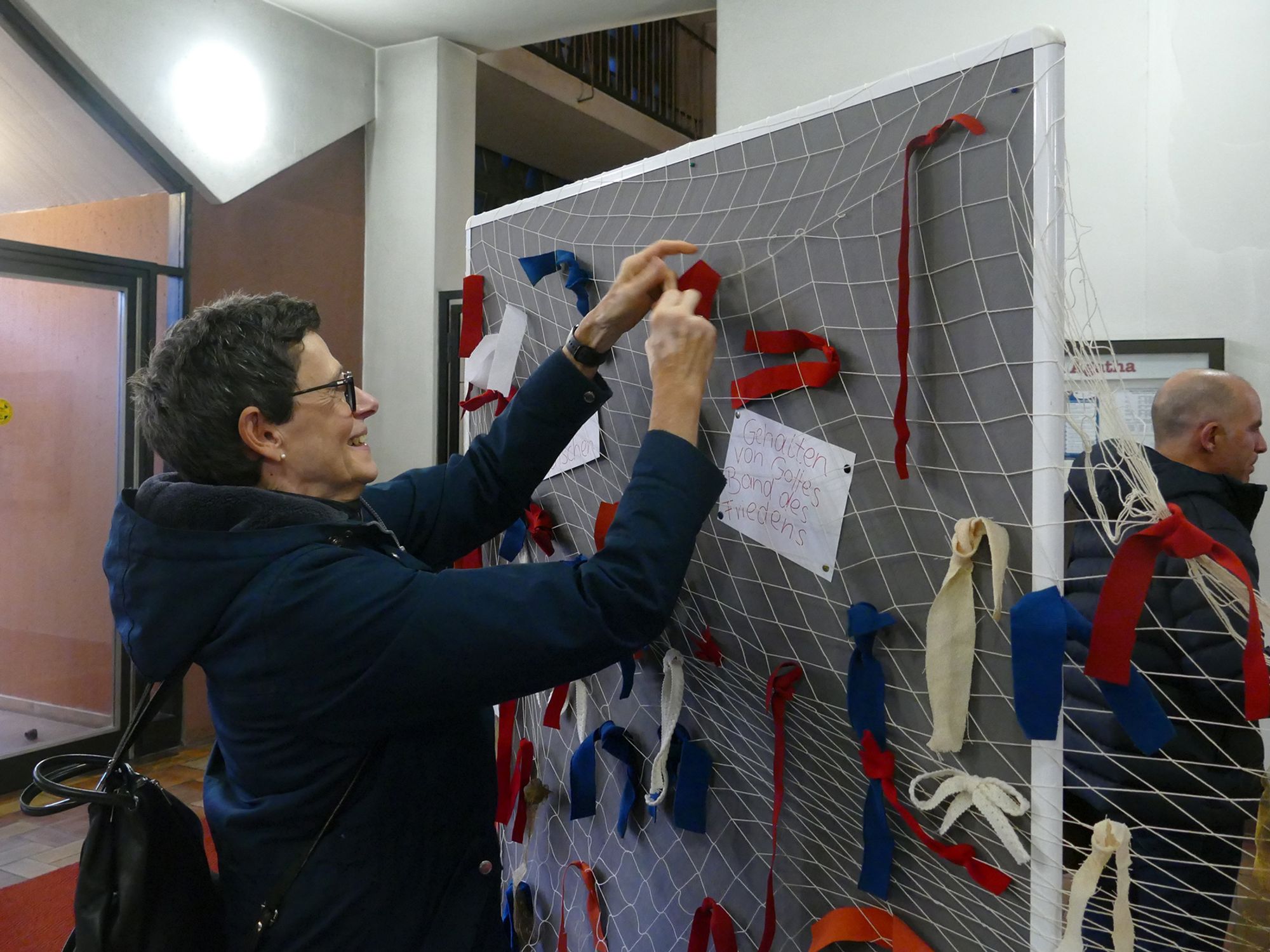 Aschaffenburg (POW) Viel ist bei der zehnten „Nacht der offenen Kirchen“ in Aschaffenburg am Samstagabend, 28. September, los gewesen. Geschätzte 1000 Besucher schlenderten zwischen 18 und 23 Uhr durch die Innenstadt und ließen sich an den 13 Veranstaltungsorten von den zahlreichen Angeboten inspirieren. So gab es beim ökumenischen Eröffnungsgottesdienst in der Sankt-Agatha-Kirche von Pfarrerin Ulrike Gitter und Gemeindereferentin Eva Meder-Thünemann Impulse zur Frage, was die Menschen trotz aller Unterschiedlichkeiten miteinander verbindet. Die Teilnehmer konnten am Ende Bänder in ein Netz einweben ̶ als Zeichen dafür, dass sie gehalten sind von Gottes Band des Friedens. Erstmals dabei war die Neuapostolische Gemeinde, die anschließend in dieser Kirche einen Gebetsparcours aufgebaut hatte und zu einem Begegnungscafé einlud. Nebenan im Martinushaus begeisterte die Musik der Elsenfelder Band „Klezmusica“ die Besucher. Im Anschluss erfuhr man dort etwas über den Aschaffenburger Stadtpatron und Namenspatron des Hauses Sankt Martin. Dazu gab es einige Kostproben aus dem Martinus-Musikspiel, das am 9. und 10. November wieder aufgeführt werden soll und für das es jetzt schon Karten im Vorverkauf gibt.