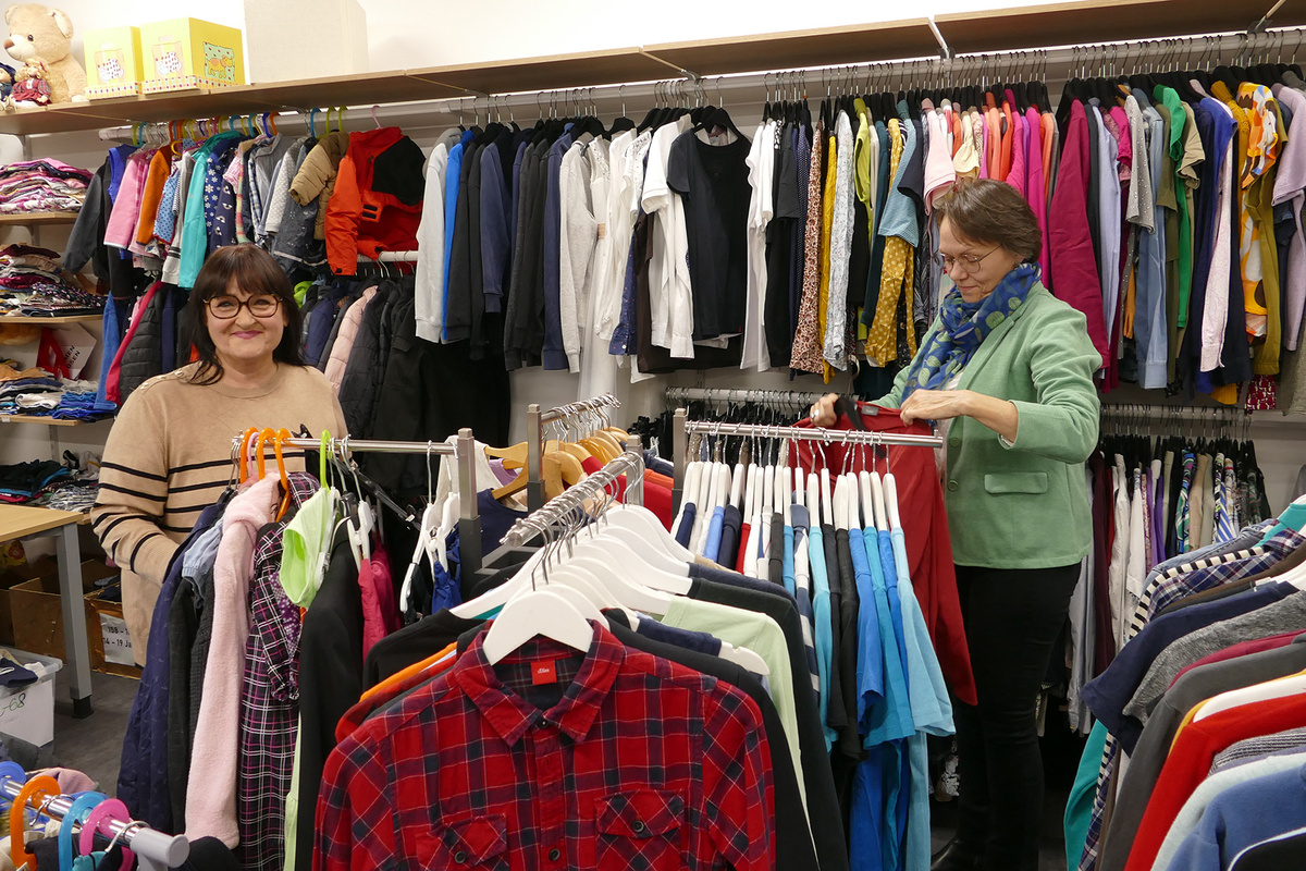 Auch heute gibt es das mit dem Kleider teilen immer wieder – aber inzwischen gibt es dafür Einrichtungen. In Aschaffenburg zum Beispiel betreibt die Caritas schon lange eine Kleiderkammer, in der sich Bedürftige mit den notwendigsten versorgen können. Die wurde jetzt konsequenter Weise in „Martinsladen“ umgetauft. Burkard Vogt war mal dort um zu sehen, wie die Sache mit dem Teilen da funktioniert.