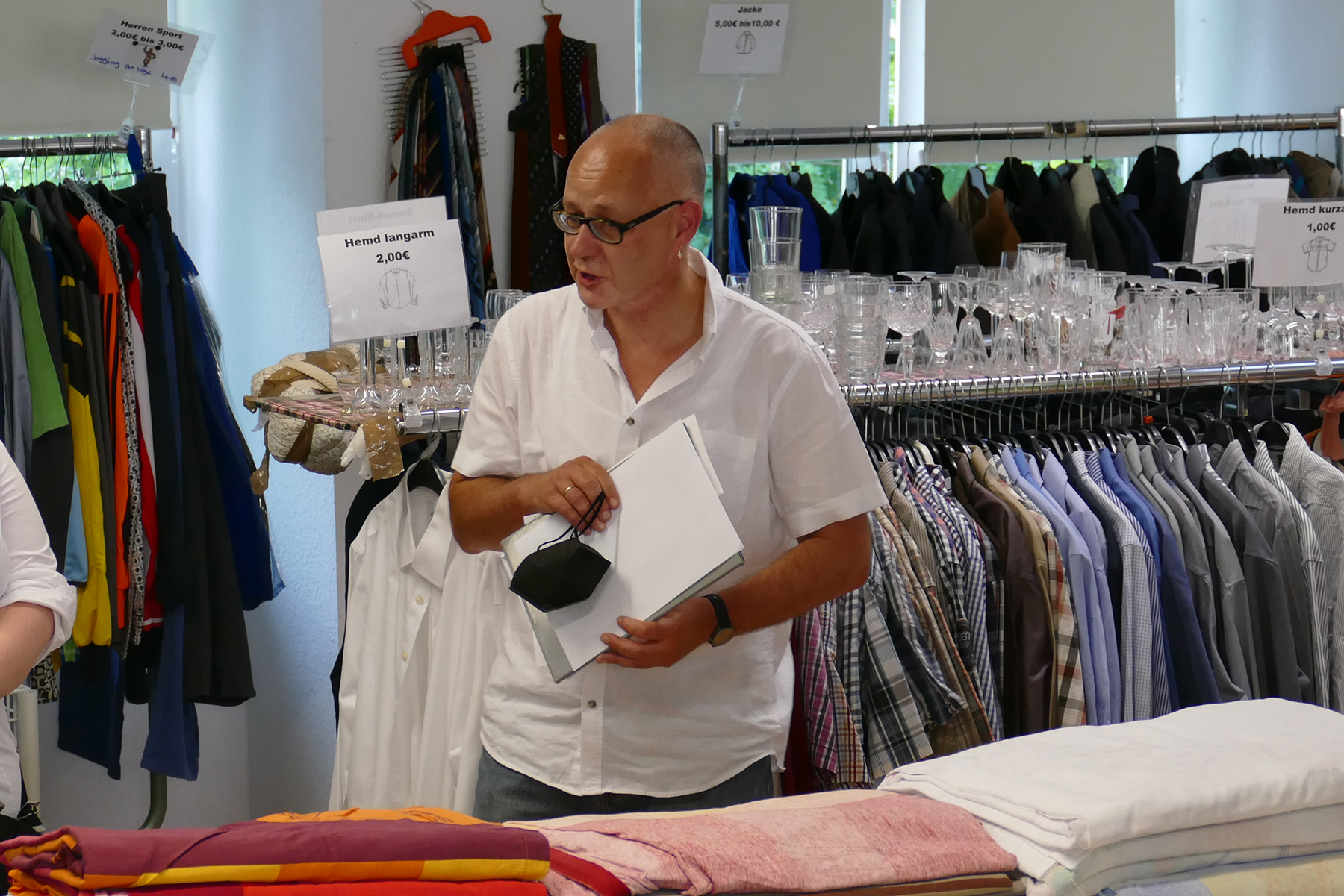 Für das Kirchenmagazin wollen wir heute mal einen Blick auf die werfen, die dort arbeiten. Denn das ist ein extrem wichtiger Teil des Arbeitsmarktes. Ein Sicherheitsnetz, ein Sprungbrett, eine eigene Wertschöpfungskette. Christoph Lefherz berichtet aus dem Sozialkaufhaus der Diakonie Aschaffenburg