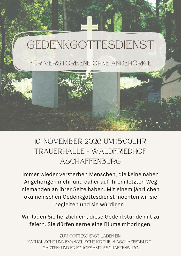 Gedenkgottesdienst - für Verstorbene ohne Angehörige